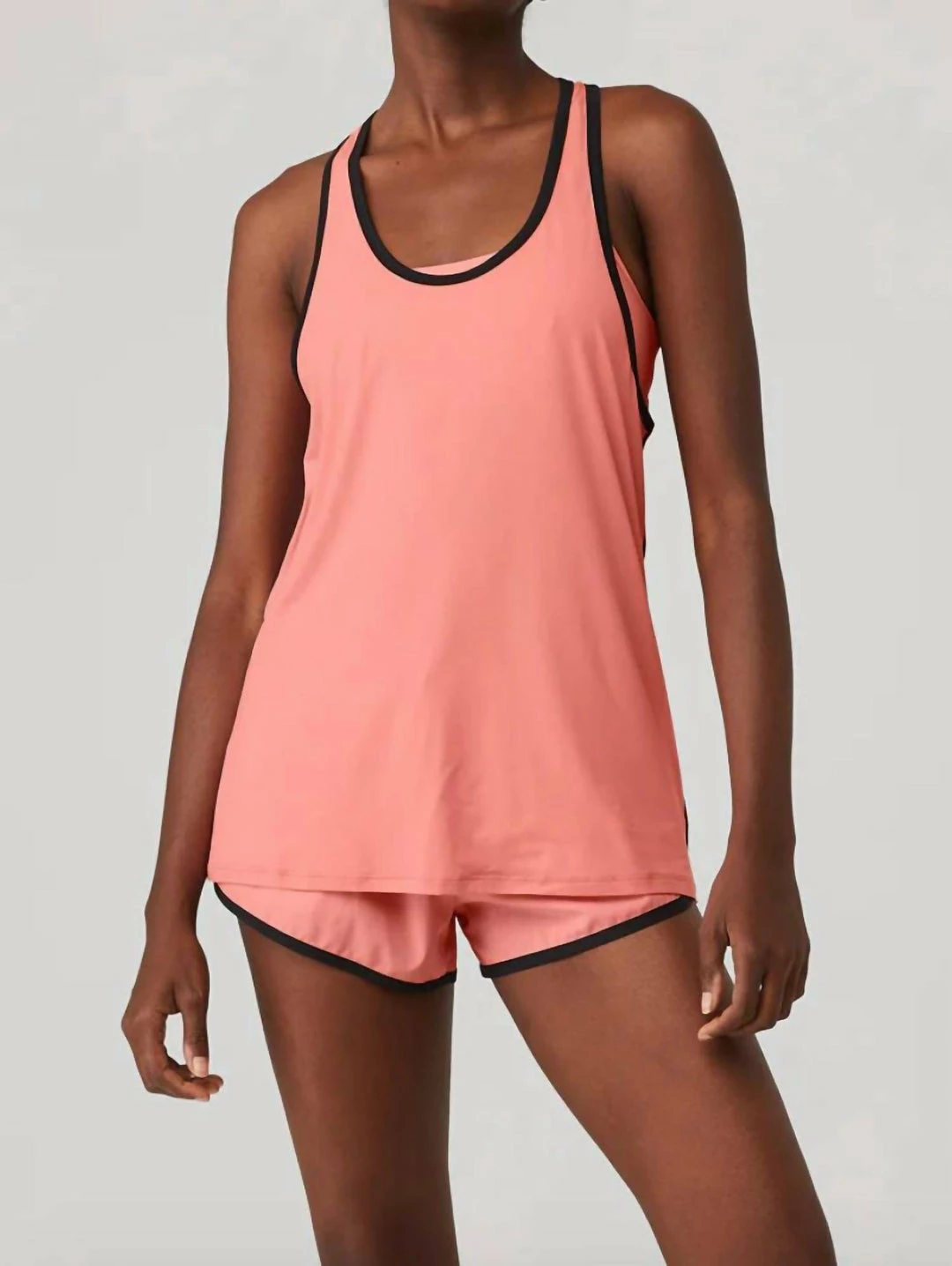 This flowy, full-length, go-to tank features a scoop neck and racerback with cool, contrast piping. Made from ultra-lightweight pulse fabric, this top is essential for breezy morning runs and HIIT classes that bring the heat.