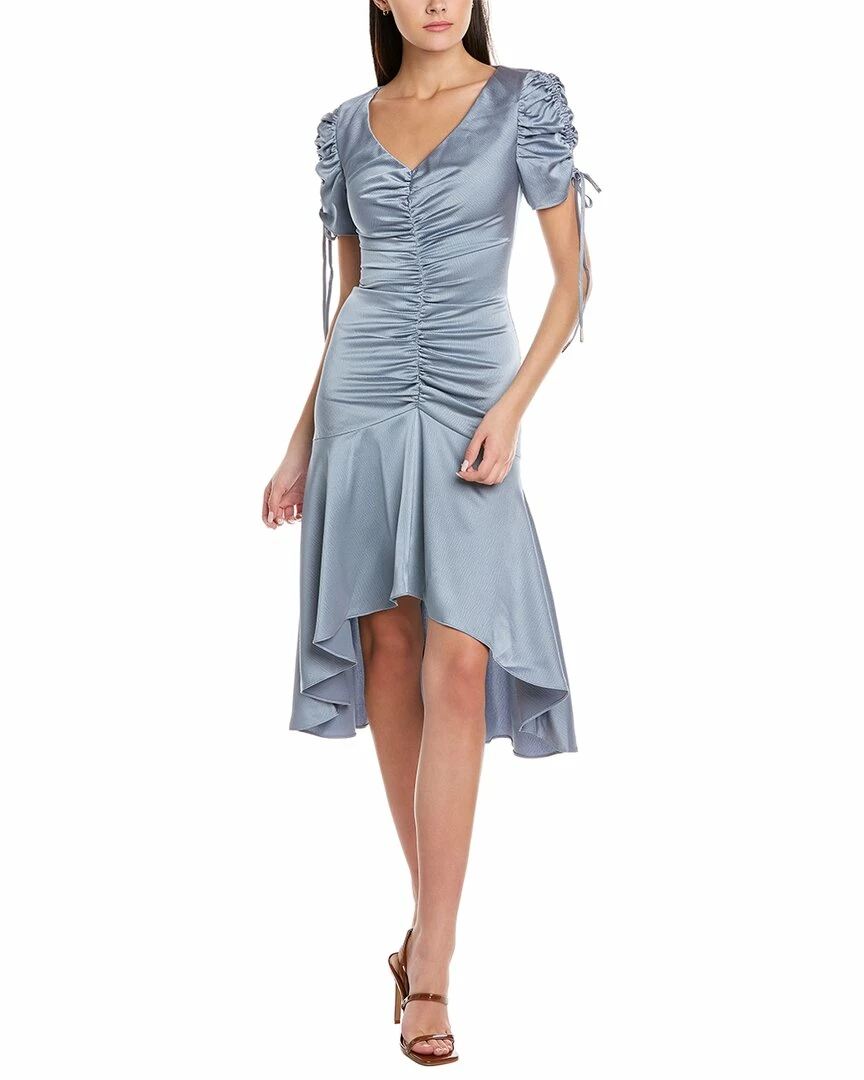 - Design Details – Textured Design, Cinched Sleeves, Ruched Front, High-Low Hem