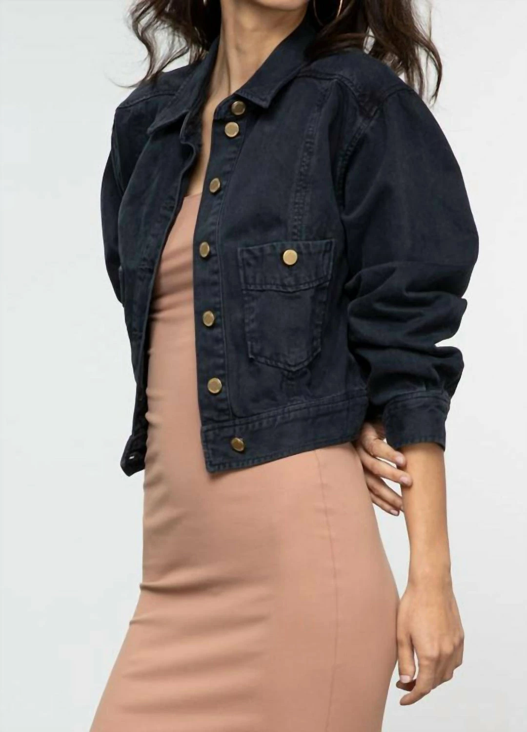 Available in Black, Off-WhiteCotton denim jacketVoluminous sleevesRelaxed fitMachine washableModel is 5’11”, wearing size 34