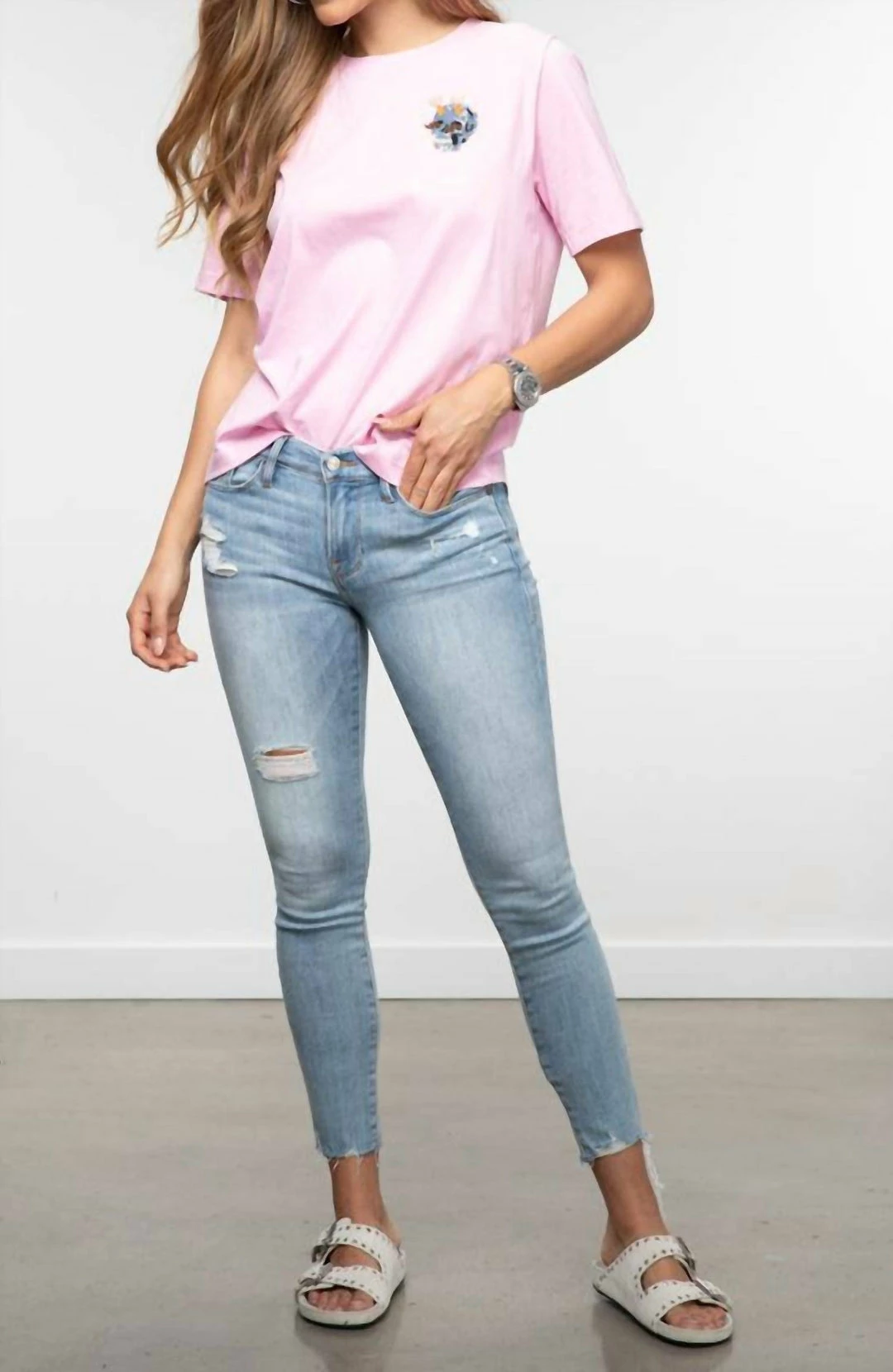 This is a classic, organic cotton, short-sleeved designer t-shirtFairy tale pink colorFairy tale pink t-shirtSkull-shaped bead and sequin embroideryDesigned in BelgiumDry clean onlyModel is 5’10”, wearing size 0