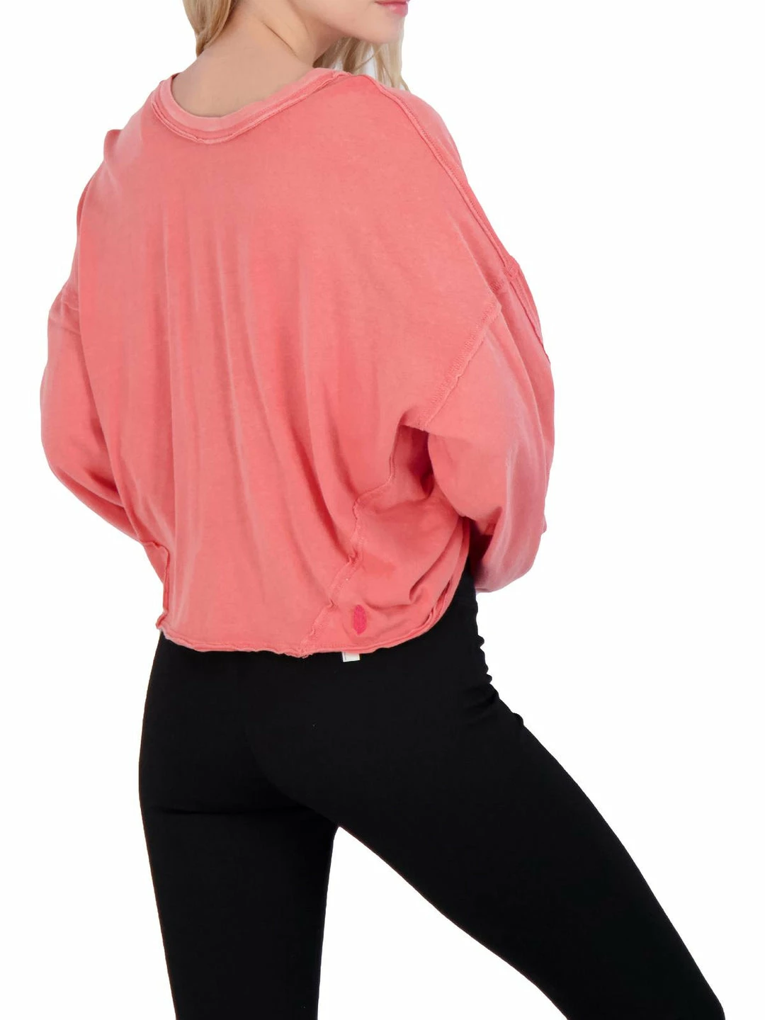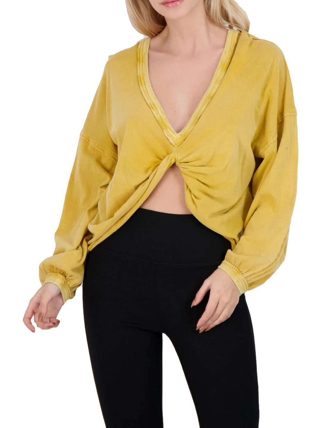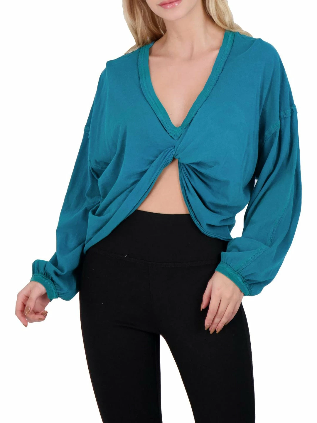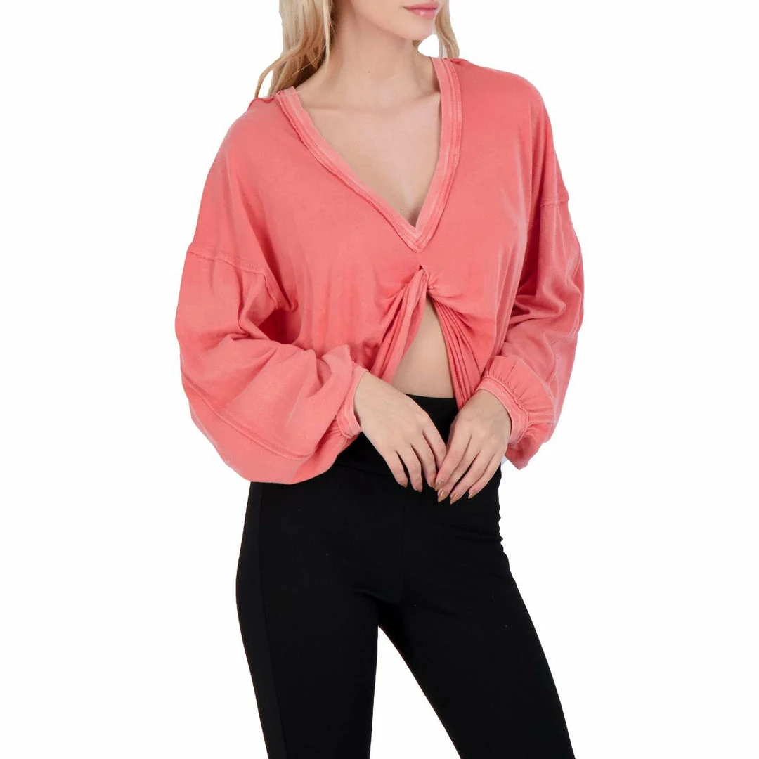 Cozy is key in the Moon Rising faded twist front sweatshirt by FP Movement by Free People. Made with 100% cotton. This sweatshirt’s relaxed fit, balloon sleeves, and twist front detail offer chic, laid back style. It features distressed details and a V-Neck construction. Pair it with shorts for lounging or denim for that coffee run. This design can be reversed to better fit your preference. Pull on. This sweatshirt is guaranteed authentic.