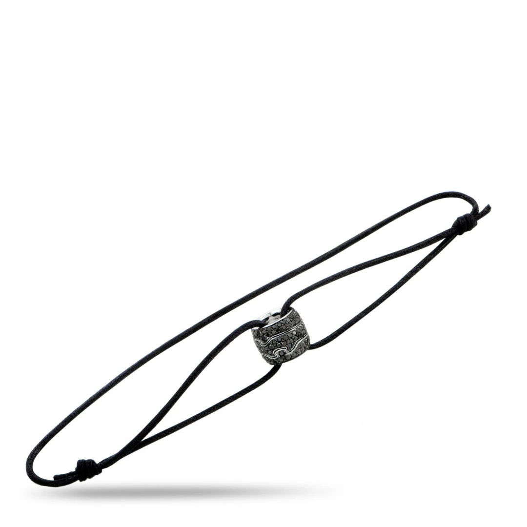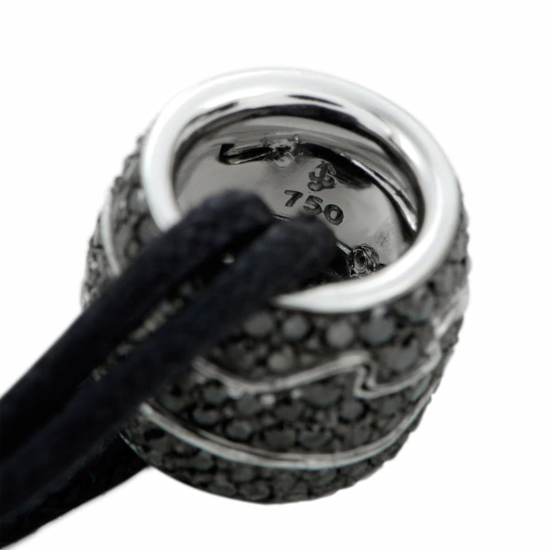 Distinctly offbeat with a subtle touch of unconventional luxury, this fascinating bracelet designed by Georg Jensen will give a stunningly fashionable twist to your outfits. The bracelet features a stylish black cord onto which a striking silver pendant is attached, set with a total of 0.51 carats of black diamonds.