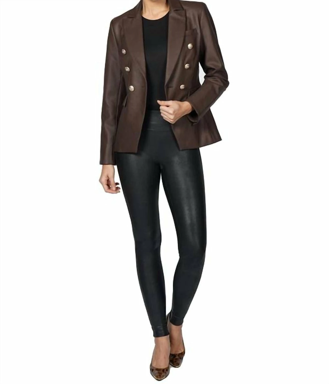 Love Token Nellie Faux Leather Double Breasted Jacket in Brown – women