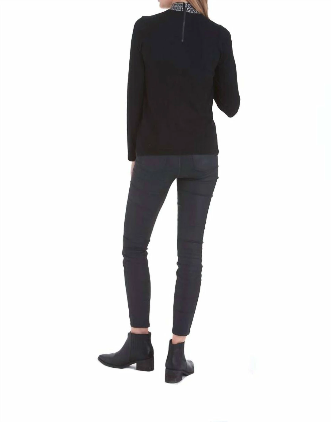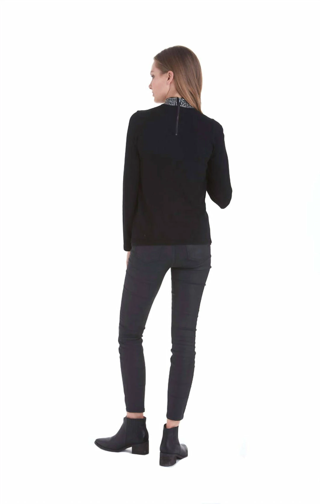 High neck long sleeve top with studs at the collar Hand Wash Cold / Do Not Bleach / Do Not Tumble Dry / Iron Low / For Best Results Dry Clean