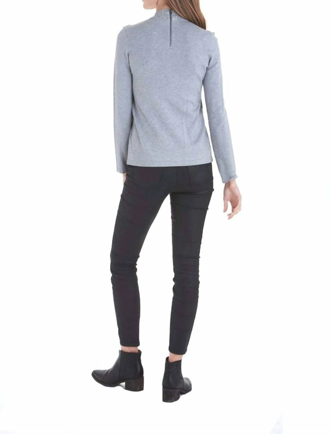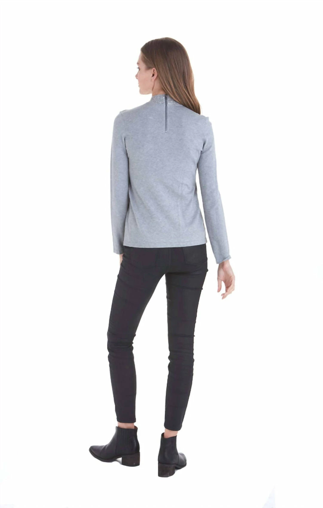 High neck long sleeve top with studs at the collar Hand Wash Cold / Do Not Bleach / Do Not Tumble Dry / Iron Low / For Best Results Dry Clean