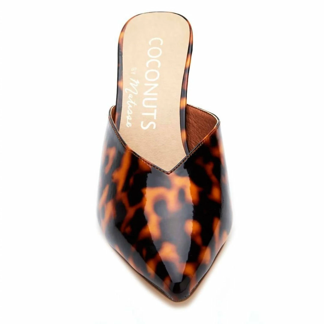 A classic kitten heel provides a poised touch for a pointy-toe pump finished in a patent tortoise. We will be wearing these from desk to drinks!Pointed ToeUpper material – synthetic leatherLining – TextilePadded insoleSlip on styleVegan leather