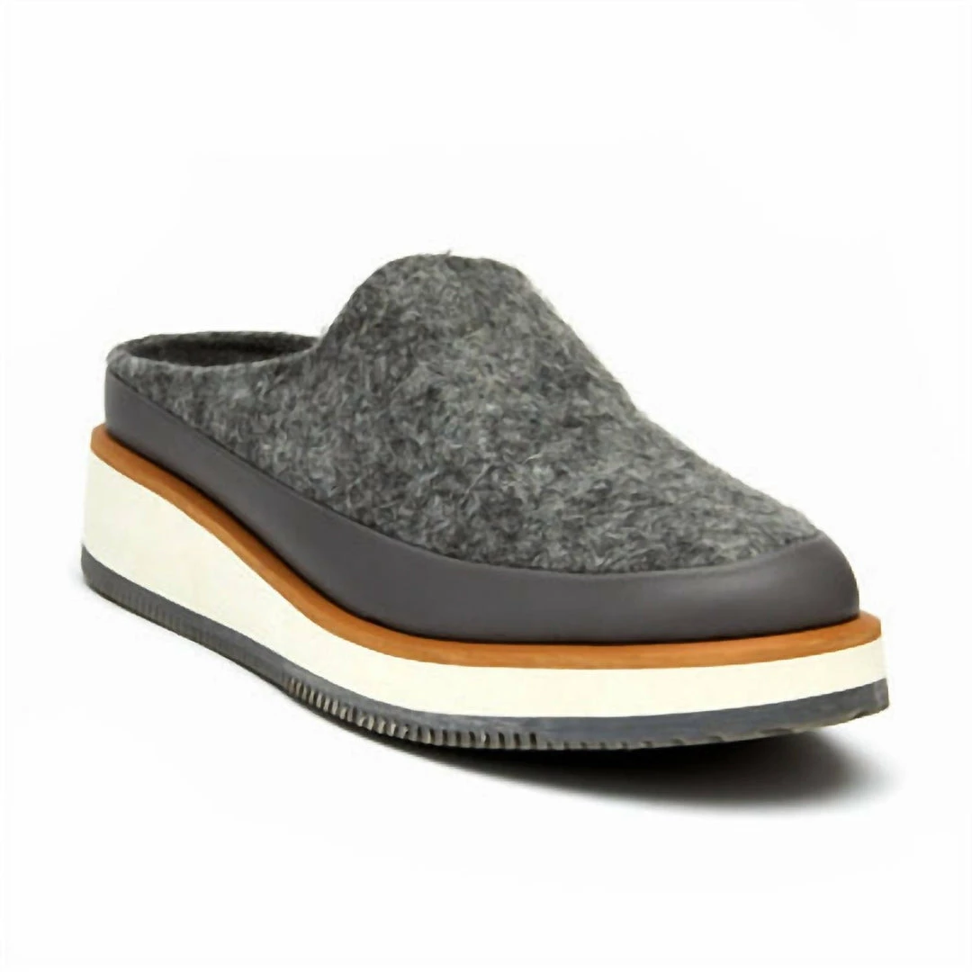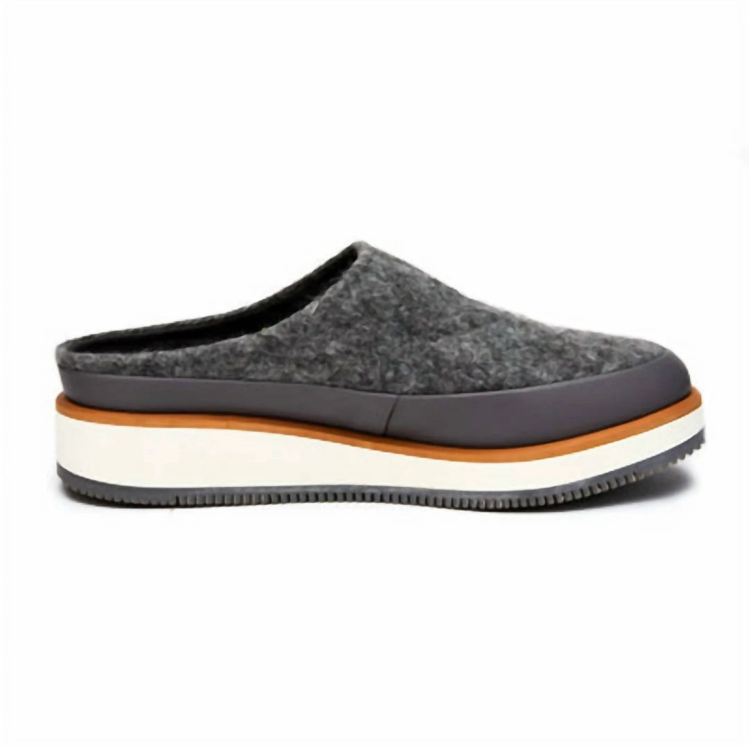 Vegan mule on layered EVA bottom.Details – Textile upperManmade outsole1.2 in / 3.18 cm heel0.75 in / 1.91 cm platformSynthetic leather liningPadded insoleSlip-on styleImportedWhole sizes only; for 1/2 sizes, order next size up.