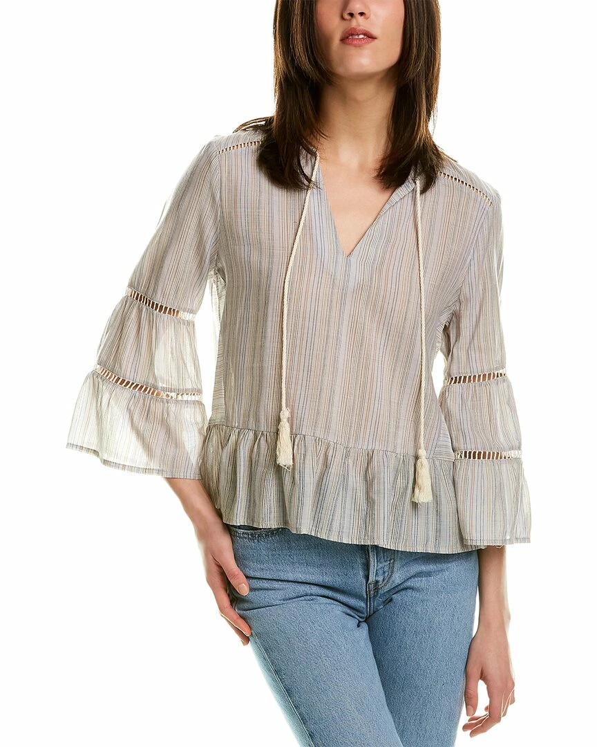 - Design Details – Split Neck With Self-Tie Tassel, Cropped Butterfly Sleeves, And Ladder Dropstitch Accents