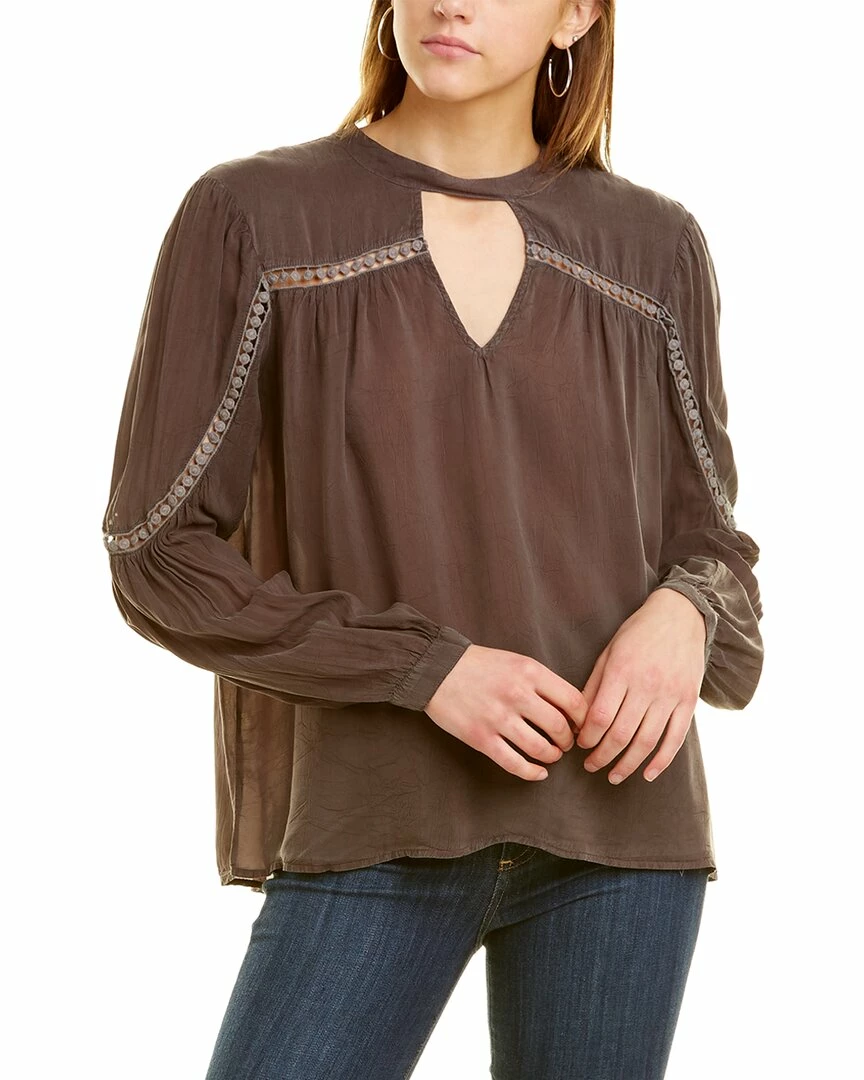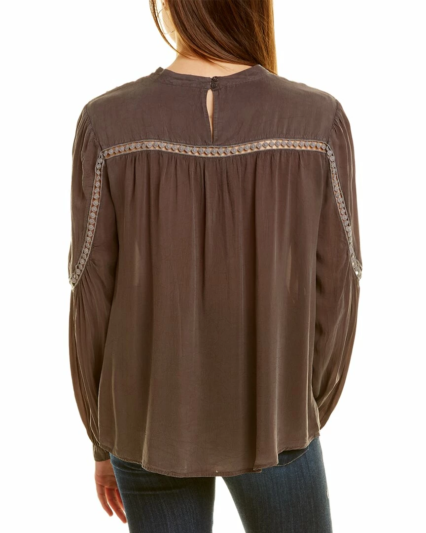 - Design Details – Keyhole Neck, Sheer Macrame Trim, Button Cuffs, And High-Low Hem