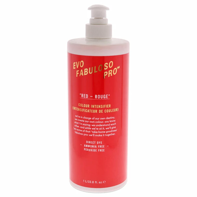 Evo Fabuloso Pro Colour Intensifier Red is deposit only, ammonia free, and peroxide free. Fabuloso pro colour refresh and customised conditioner creation service revives and maintains hair colour to leave hair vibrant, healthy and shiny.