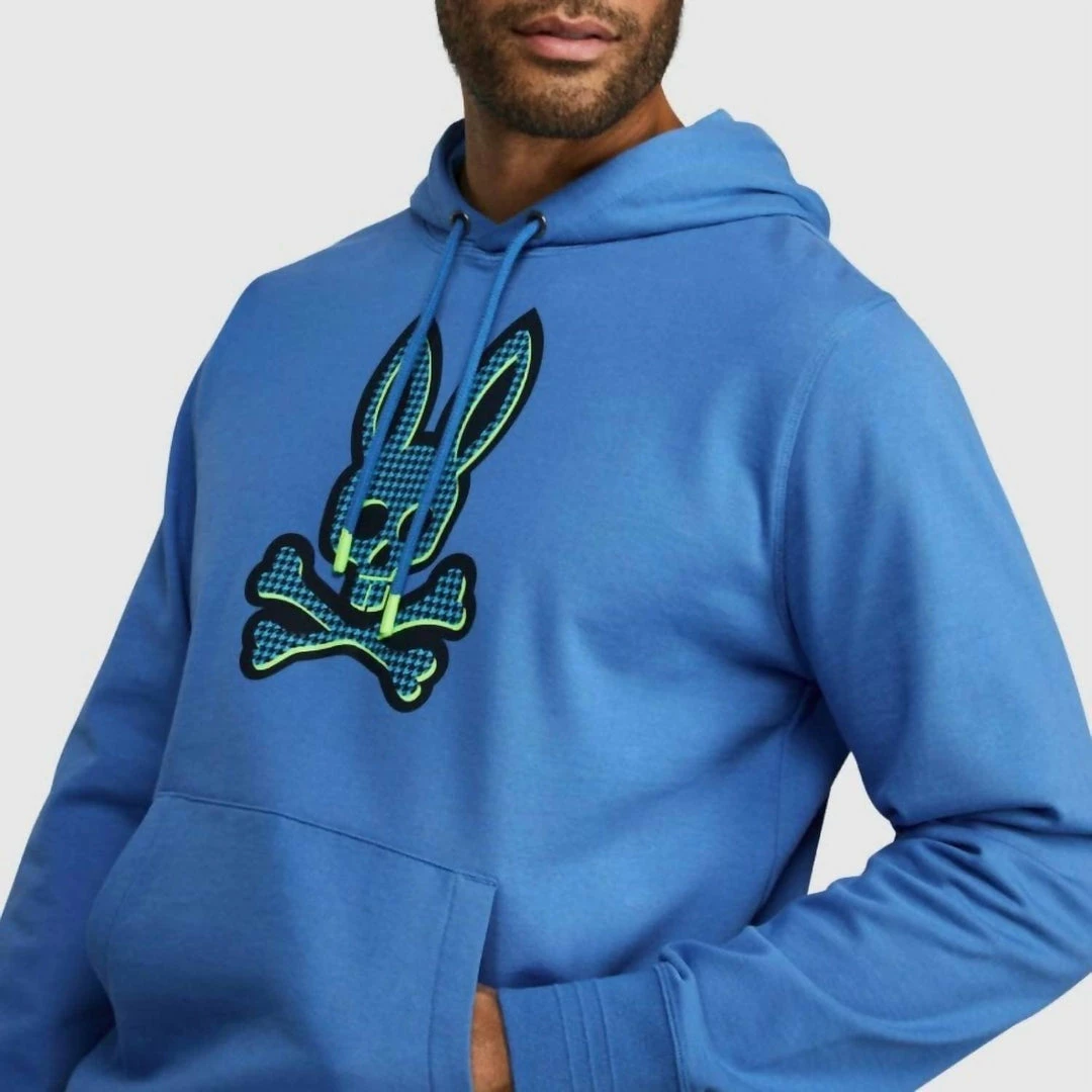 Sport your character on your chest with our mens Drake popover hoodie. The Drake popover is crafted from only the softest French terry cotton, for a luxurious on-body feel. This hoodie features a structured hood with tipped drawstrings, ribbing at the cuffs and hem, kangaroo pockets and taped seams. The Drake hoodie stands apart thanks to a bold houndstooth Psycho Bunny logo on the chest, with neon detailing that matches the twill taping on the inner seams and the tipping on the drawstrings.100% cottonTaped seamsDrawstrings at hoodAppliquéd Psycho Bunny logoModel height is 6’2 (approx. 186cm) and is wearing a size medium.