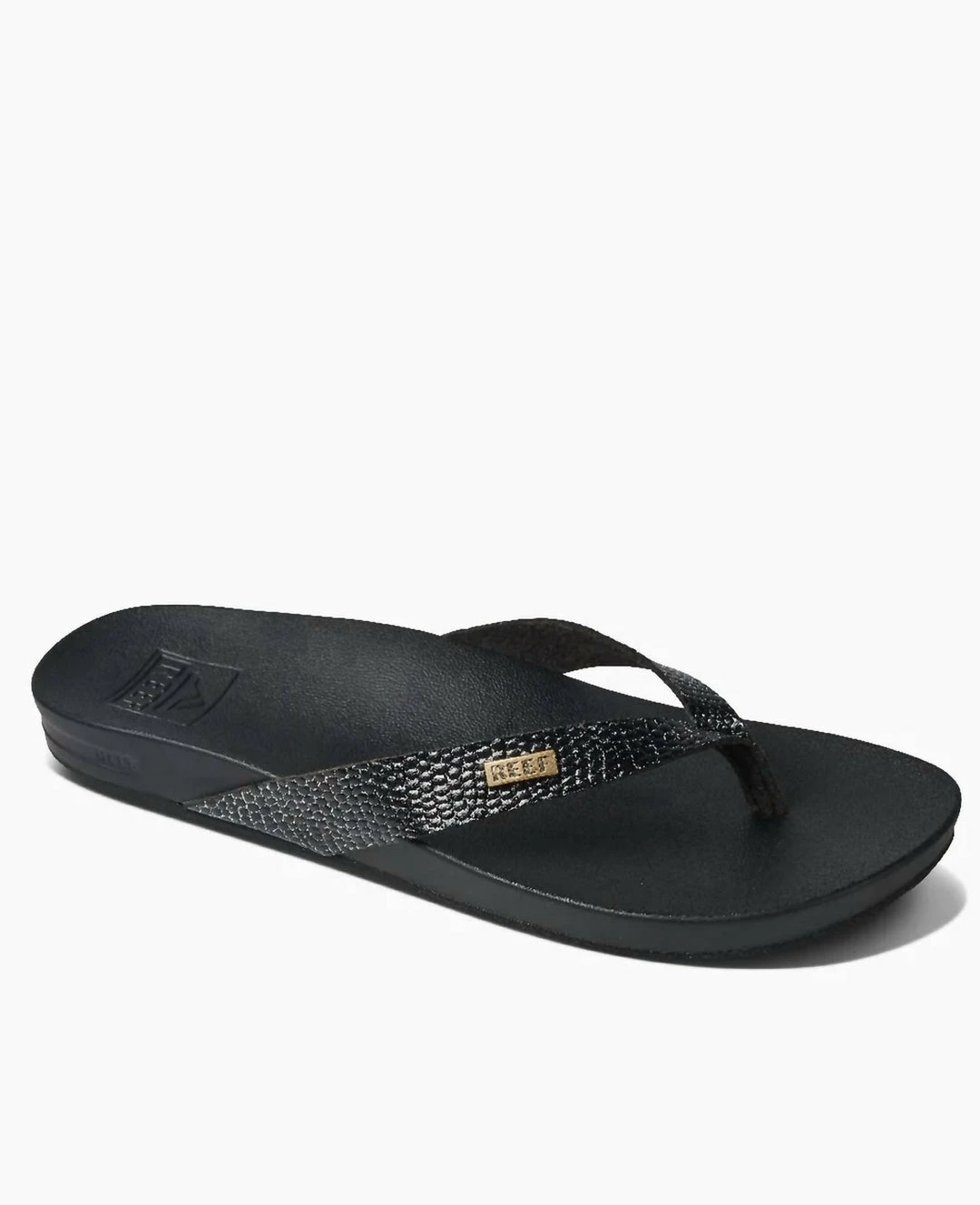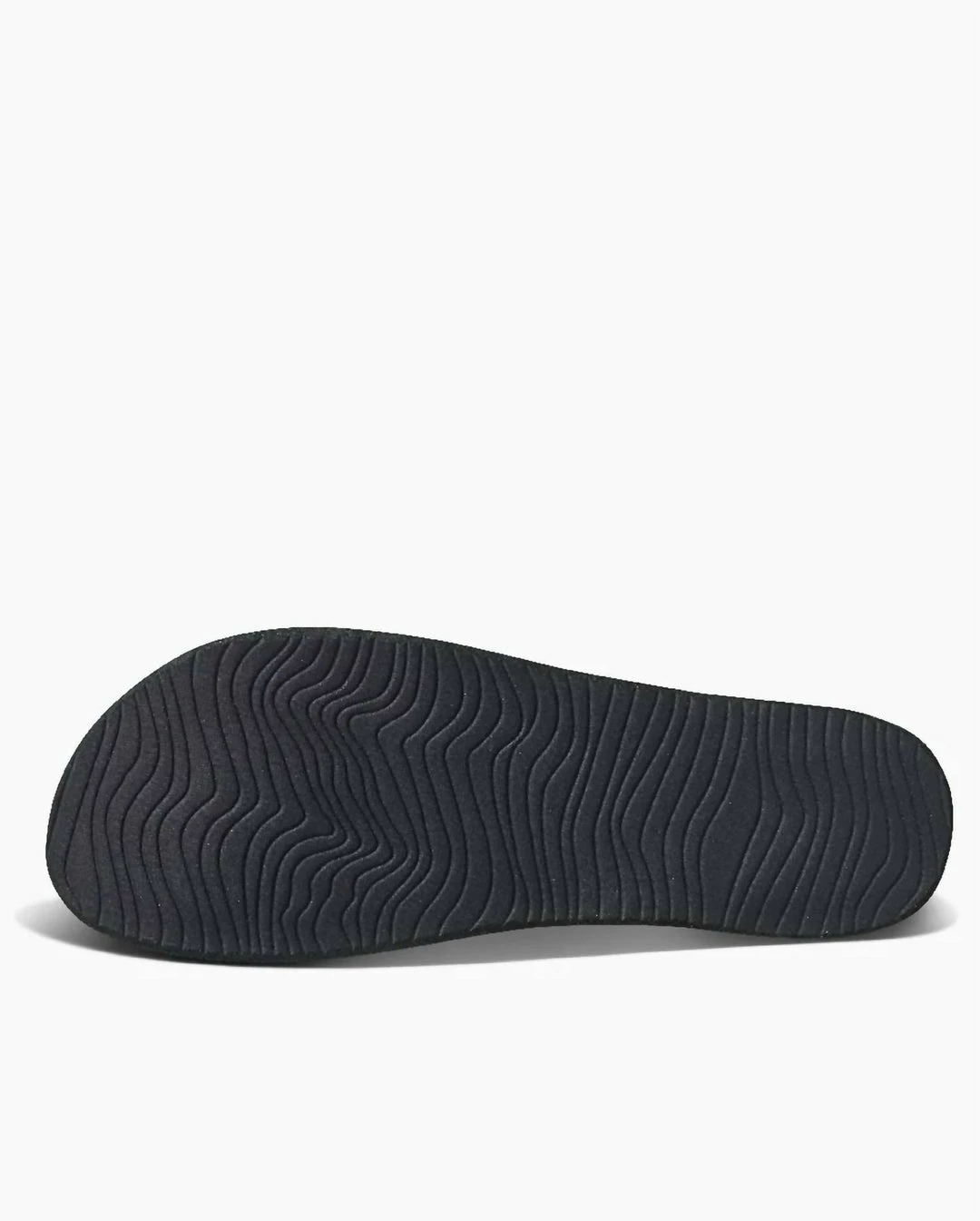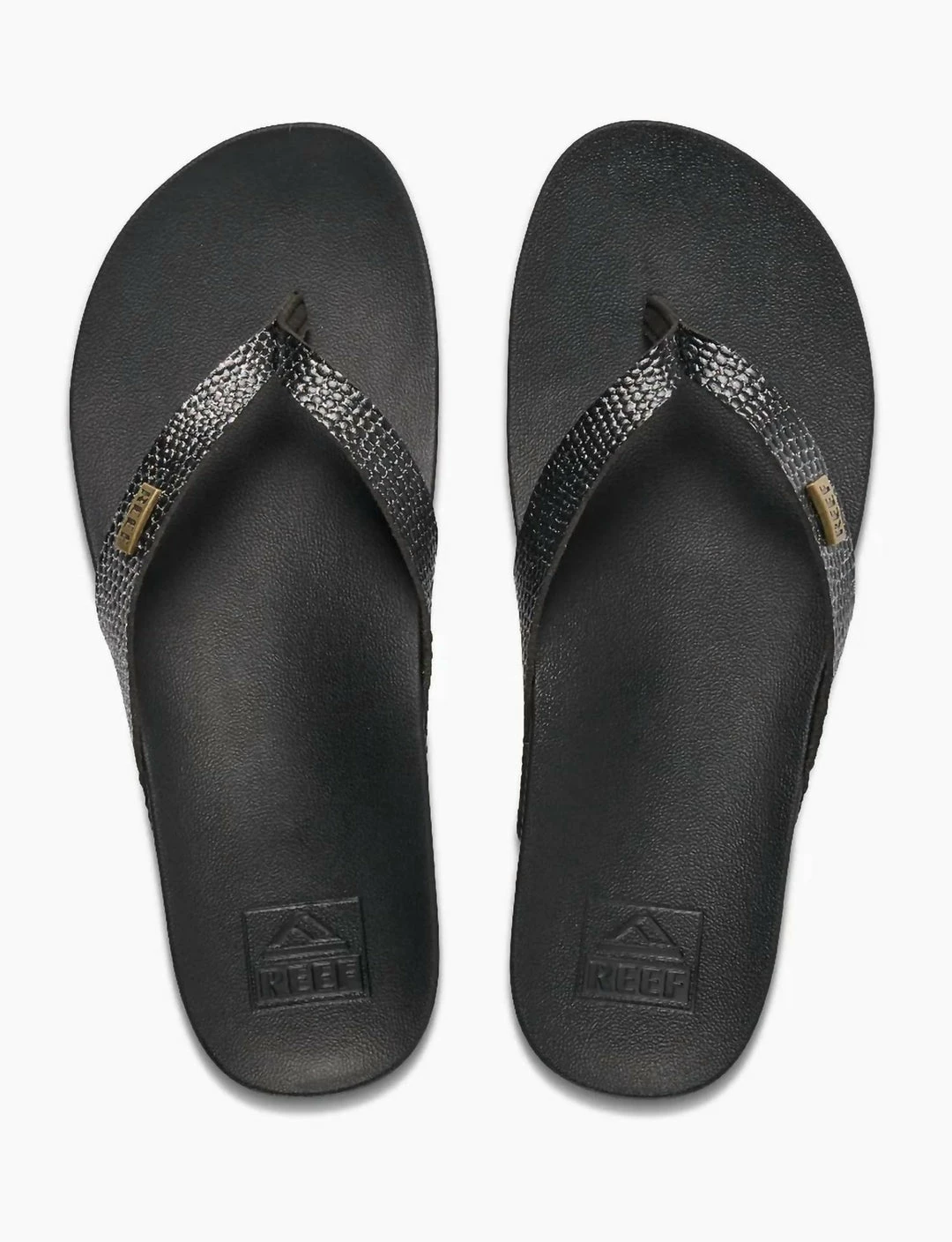 Metallic strap flip. Anatomically cushioned footbed. Arch support. 100% PVC Free.