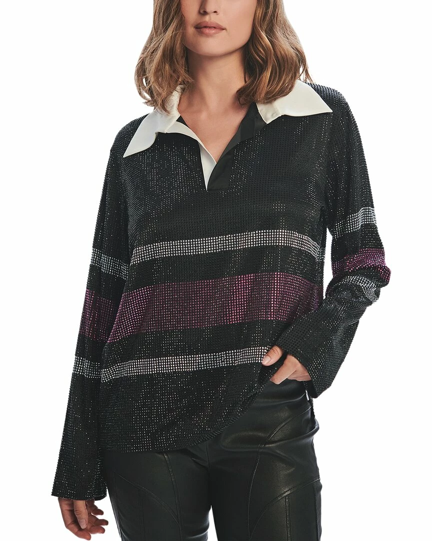 - Design Details – Striped Crystal Rugby Shirt, V-Neck