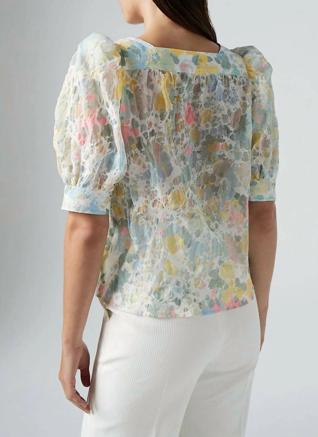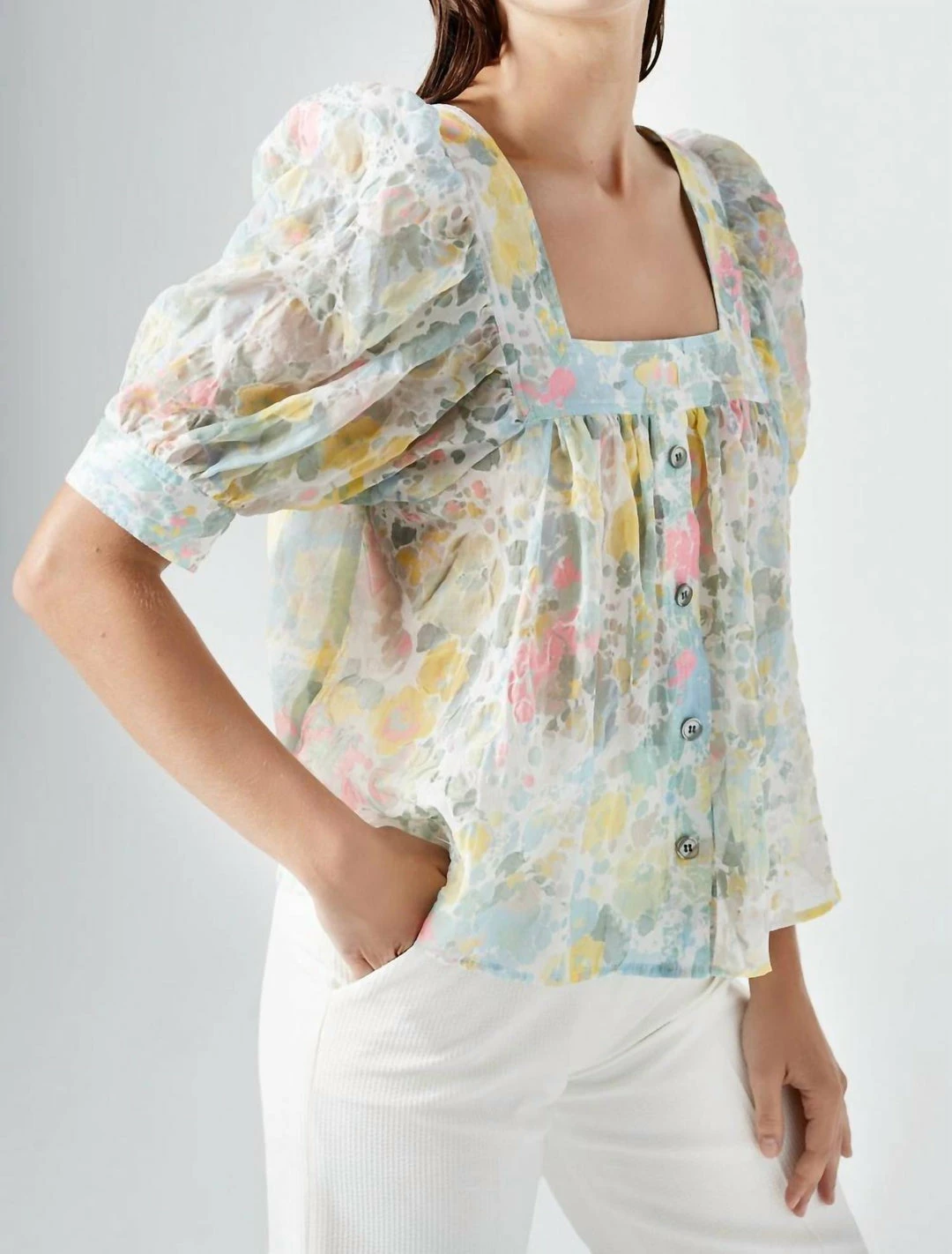Smythe Button Front Square Neck Blouse In Pastel Floral – women