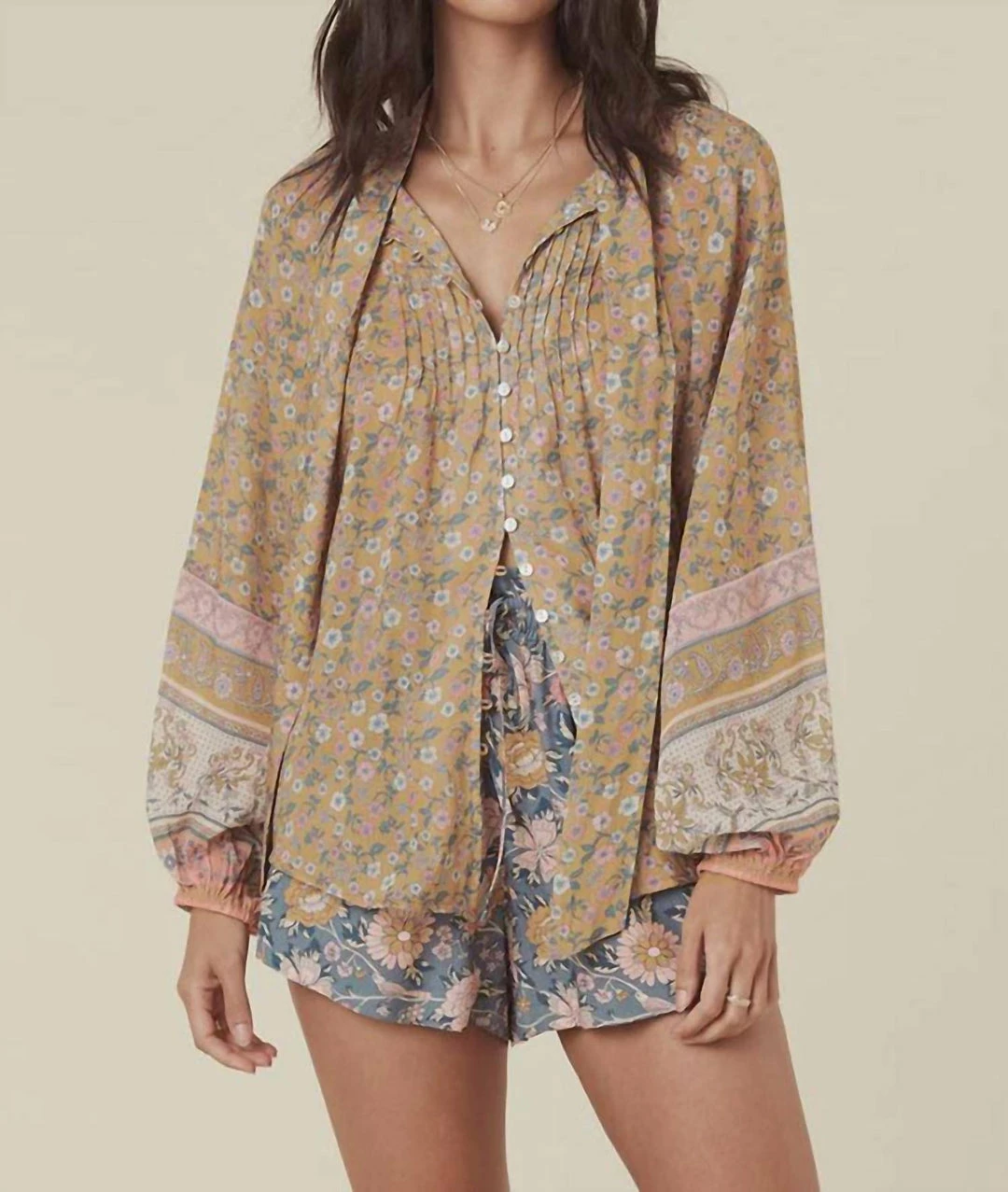 The Mossy Blouse is unlined and crafted in our uber light and floaty blend of 50/50 Lenzing Eco Vero Viscose and Organic Cotton. It features a ���pussy bow��� that can be left loose or tied for a more elevated look. Lovely pleats adorn the neckline and the center back adding some lux detail to the style. The billowing sleeves feature our stunning hand drawn Mossy border print that is finished with an elasticated cuff, and the shell buttons down the front allow for different typing opportunities. An incredibly versatile piece, we can���t wait to style this one back with the Mossy Shorts for a print on print moment; some denim, slides and a wicker basket for a casual Sunday vibe or with some lux linen pants and heels for that next event.
