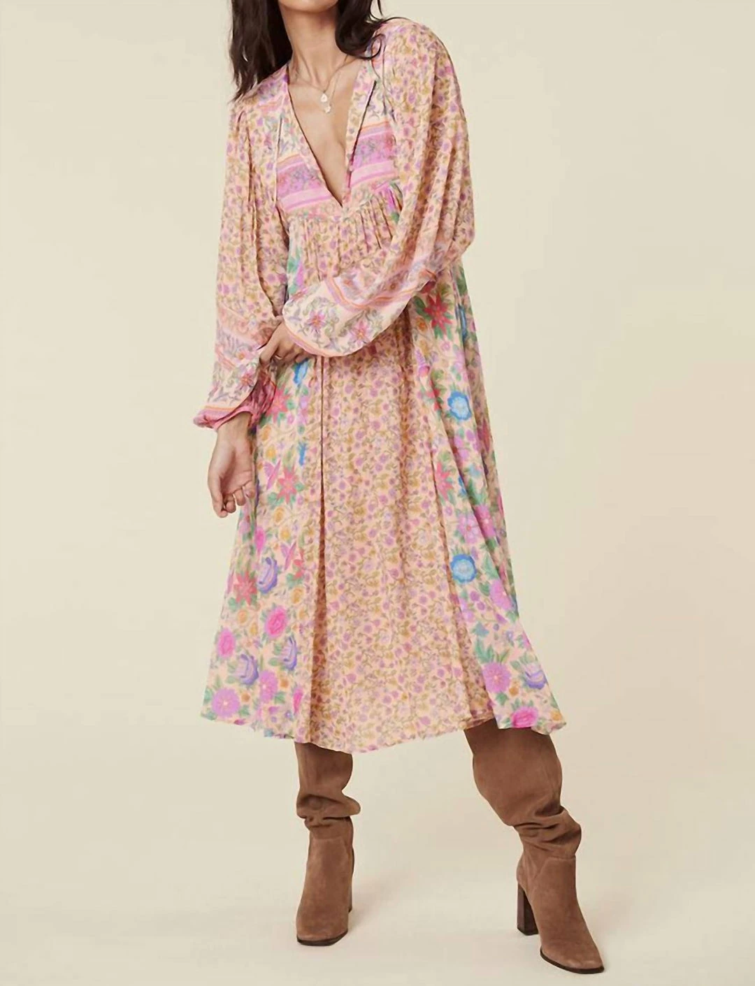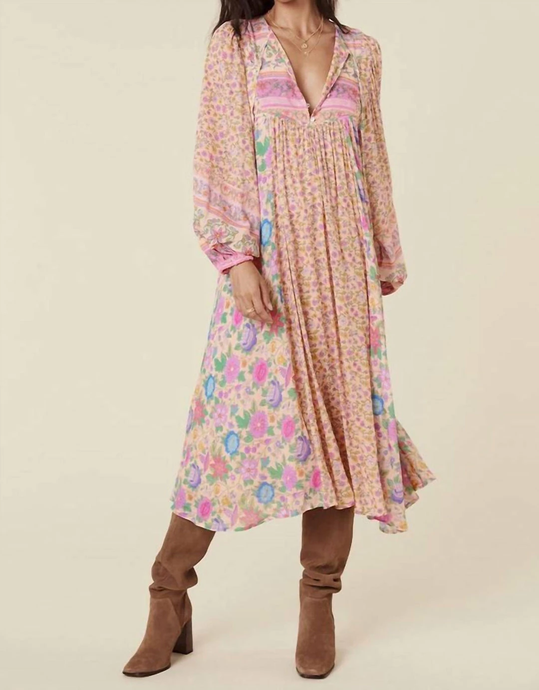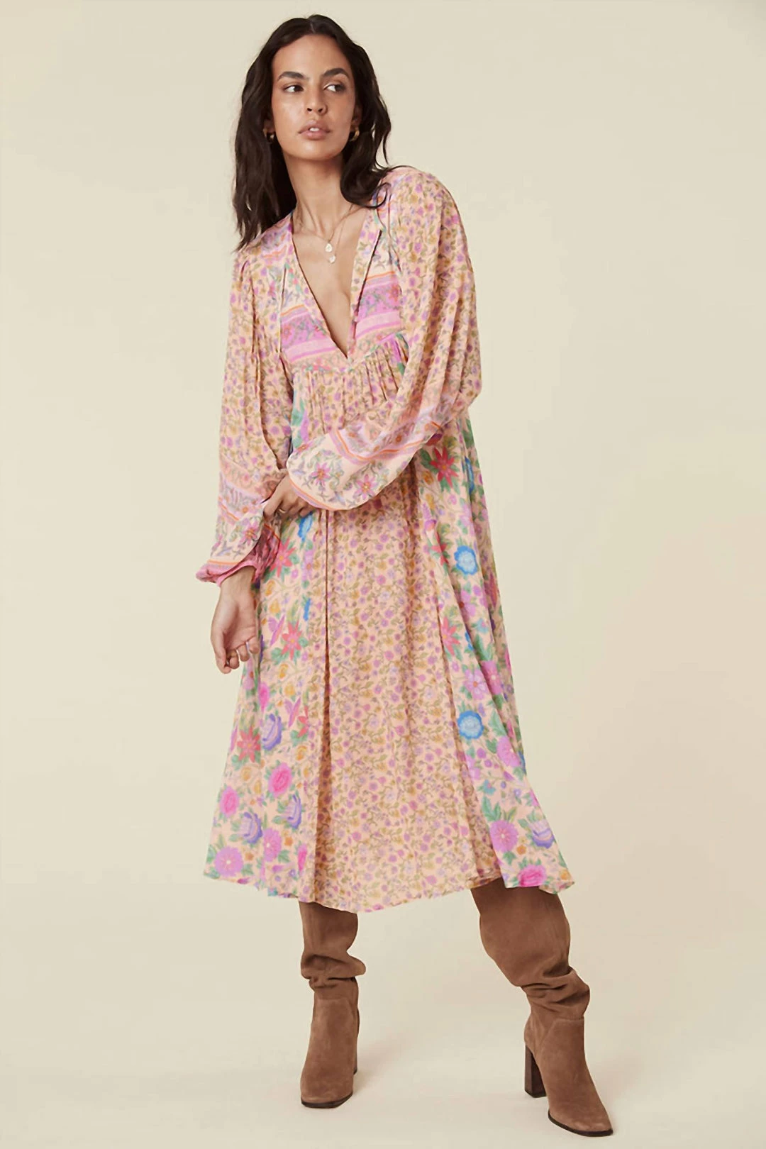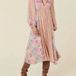Spell’s very anticipated Mossy Patchwork Boho Dress is finally here! A chic twist to a 70���s flower child dream, we are obsessed with the spliced print detail where our signature Mossy print blooms with three unique hand drawn artworks, weaving together rambling florals and striking borders. Enchanting and whimsical, we can’t wait to complete the look with oversized 70���s inspired frames, a tasseled bag and some slouchy suede boots for an easy festival look or pair with some comfy sneakers and cap for a street style moment.��- Fully Lined- Floaty fit