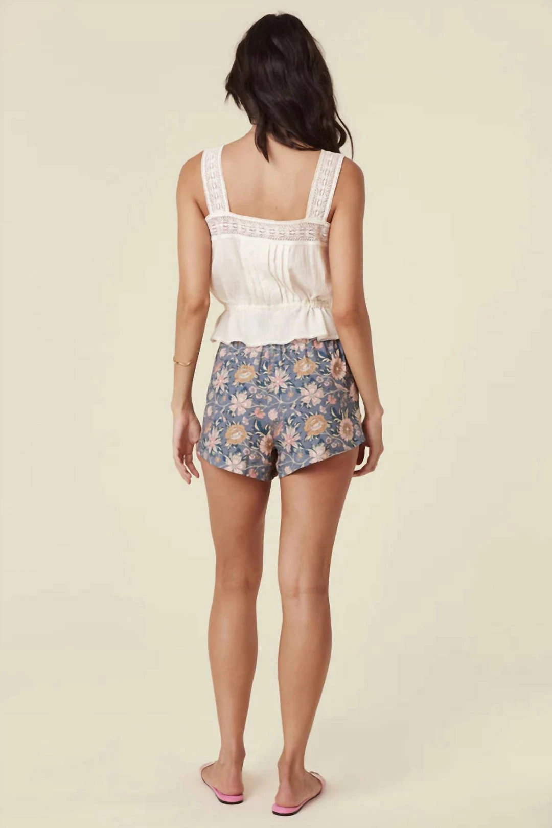 Mossy Shorts in Evening are the newest take on a well loved Spell classic.�� The hand drawn Mossy print glows in dusky pinks, deep blues and golden hues and features sprawling blooms and Sparrows in flight. Similar in fit to our Rose Garden Shorts from Garden Party, these ones include a soft elasticated waist line with functional ties, a cute frill detail above the waist band, a flattering angled bottom hem and (our favourite) ~ Pockets! Pair these with the matching Mossy Boho Blouse for a print on print combo or pop on with a band tee and sneakers for a casual weekend look.