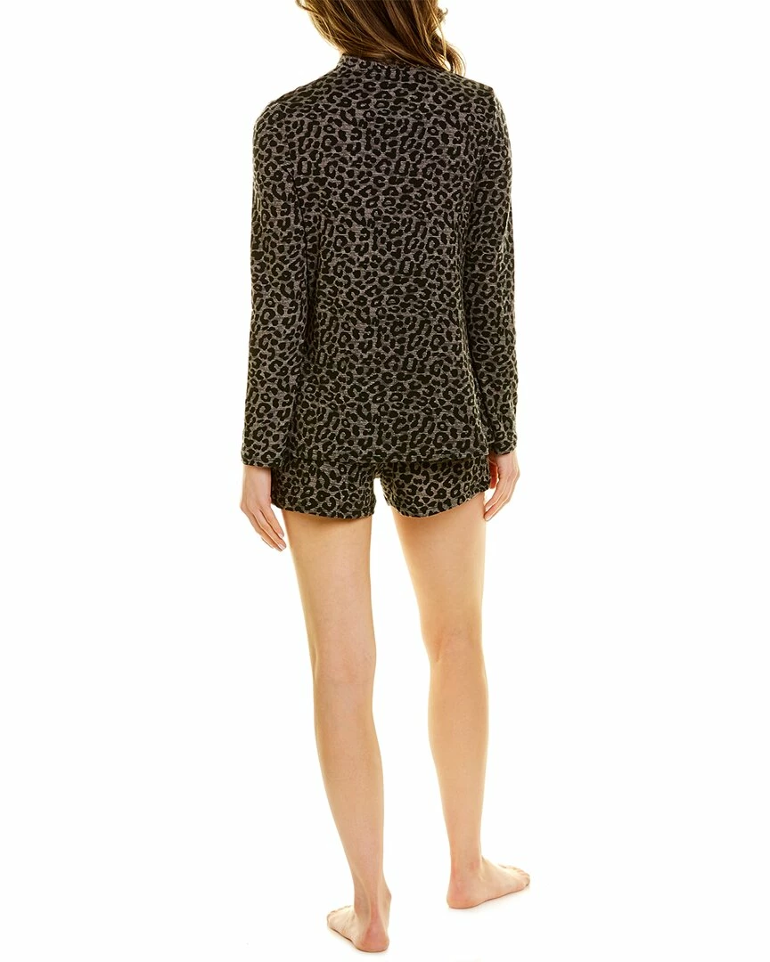 - 3Pc Travel Short Set In Black Multicolor With Racerback Tank, Slip-On Short, And Cardigan
