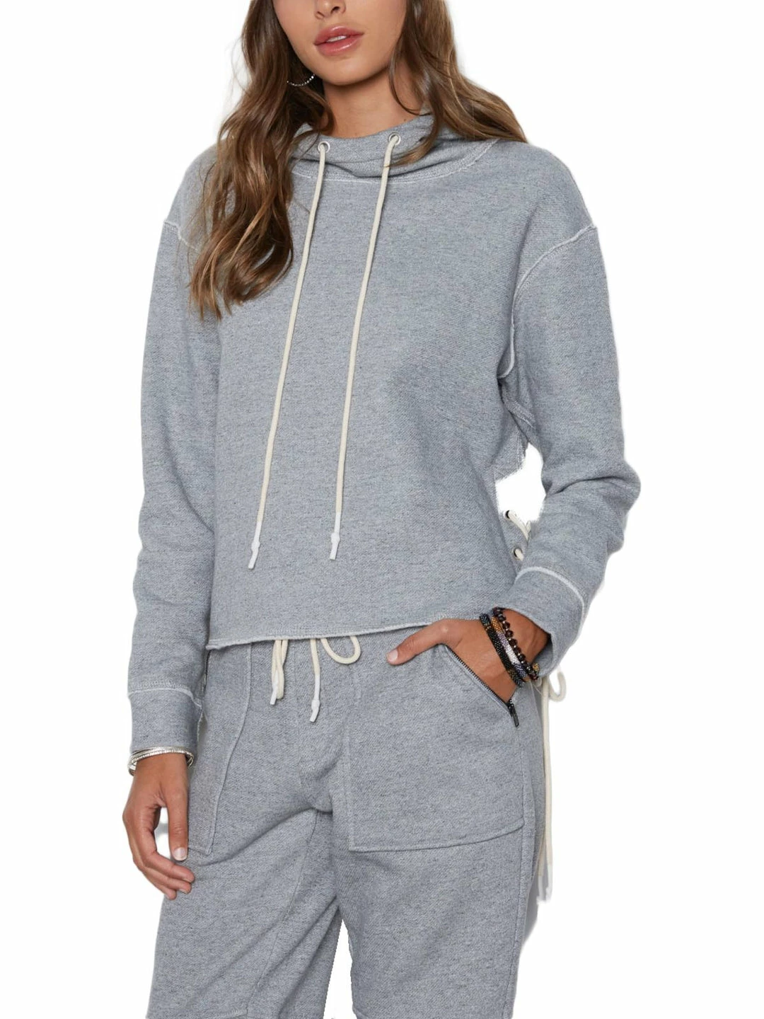 Stay cozy in the Kala French terry lace-up hoodie by Tart. Made with a blend of 51% cotton and 49% polyester. For weekends in or your commute to the gym, this funnel neck hoodie is an essential! It features lace-up side details and raw hem trimming. Pair it with your favorite sweats or leggings to complete the look. Seamed details with a relaxed construction. Pullover style. This hoodie is guaranteed authentic.