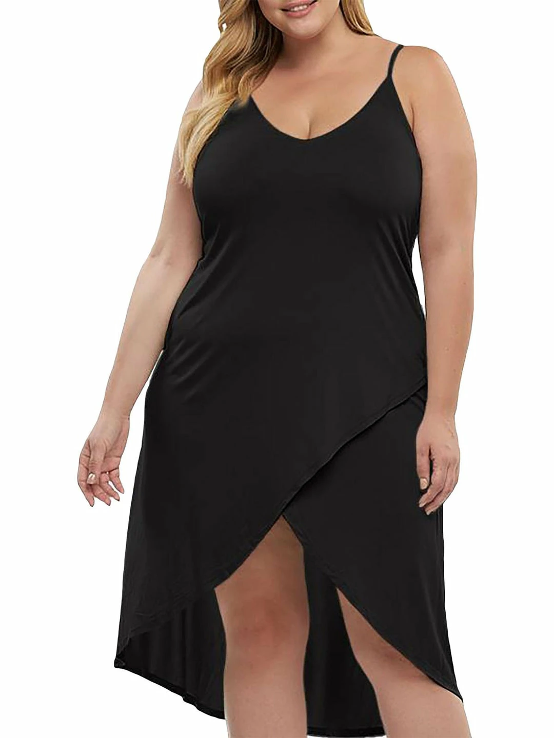 Dazzle the crowd in the Regan plus size high-low midi dress by Tart Collections. Made with a blend of 67% cupro, 37% polyester, and 6% spandex. This dress’s faux wrap high-low silhouette and slinky spaghetti straps will radiate elegance at that upcoming event. It features comfortable stretch fabric and a V-Neck construction. Finish off this look with your favorite heels and accessories. Easy pull on style. This dress is guaranteed authentic.