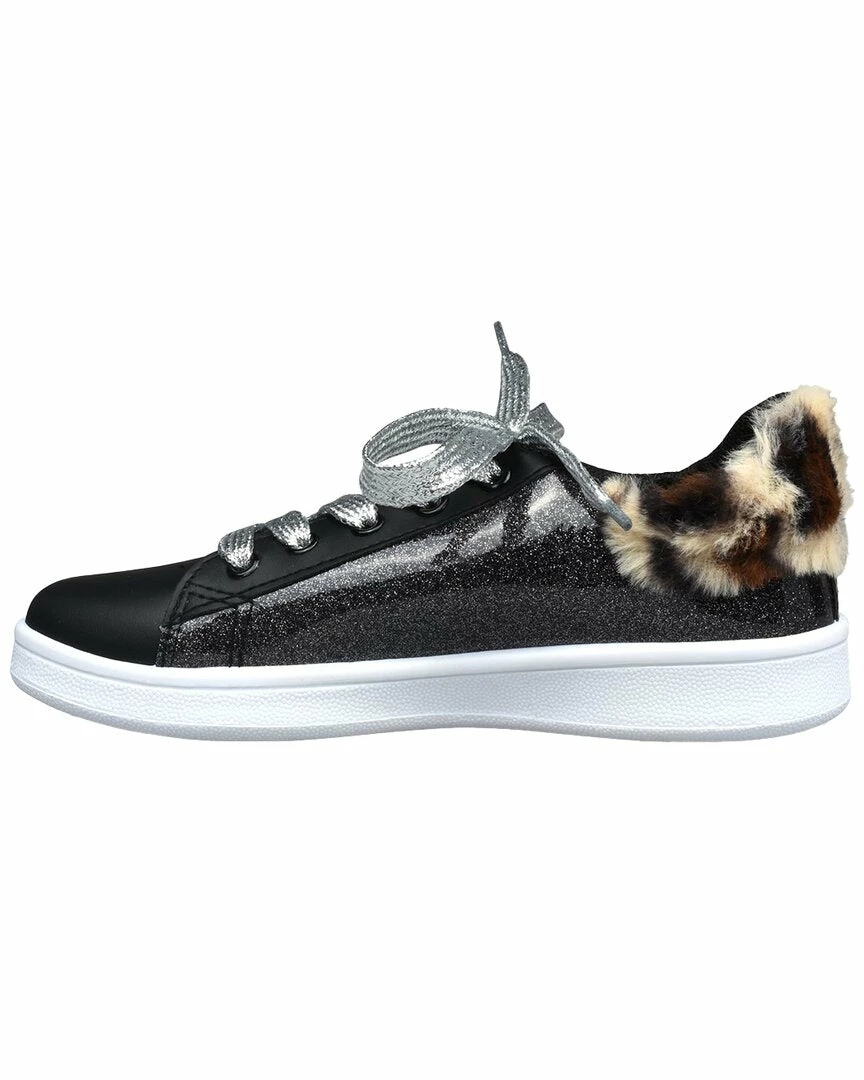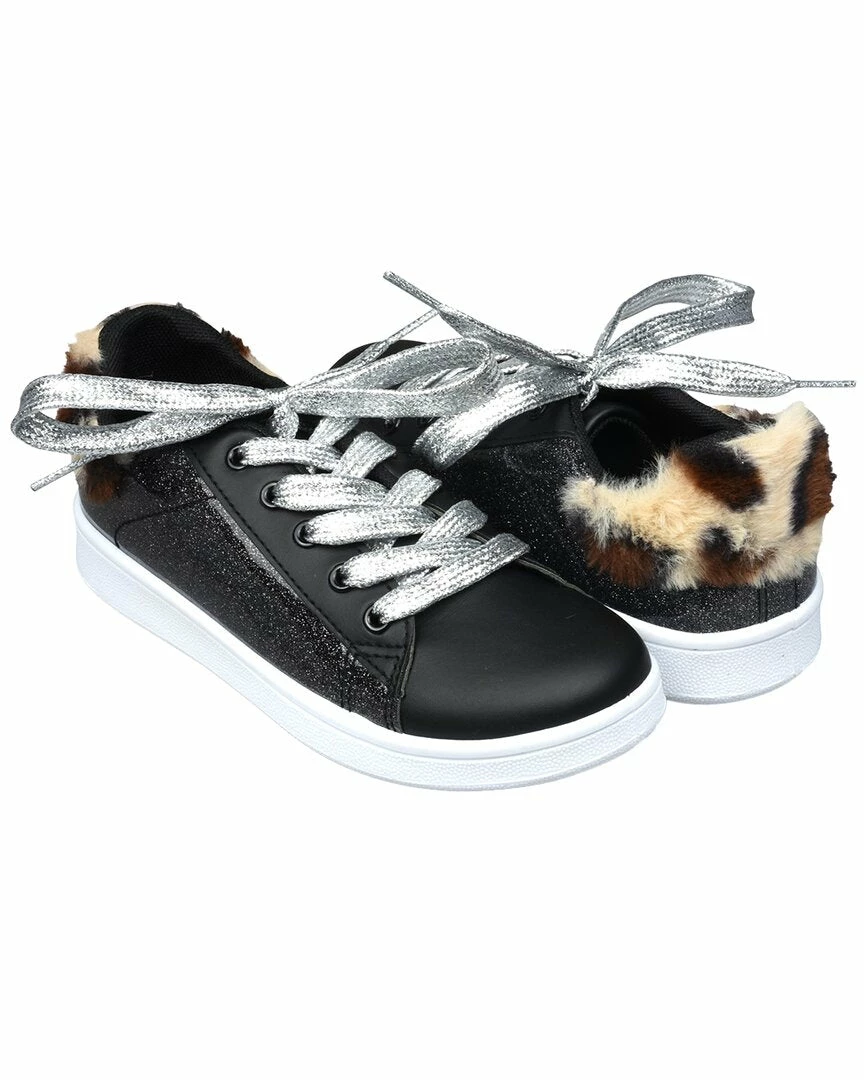 - Design Details – Black Hardware, Patent Lurex Laces And Faux Fur Trim